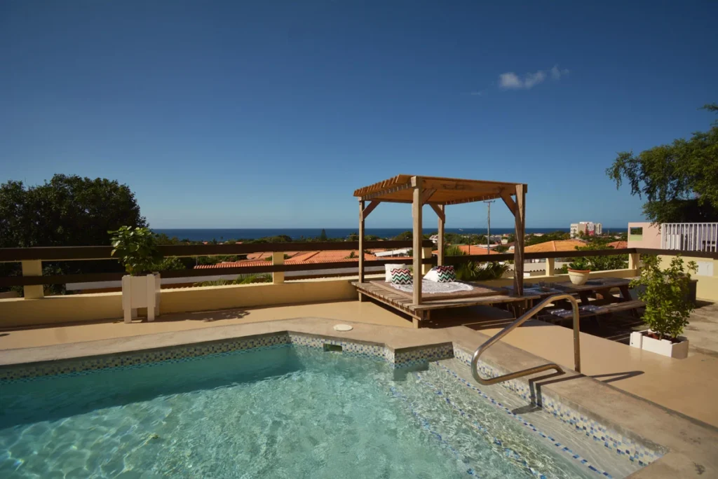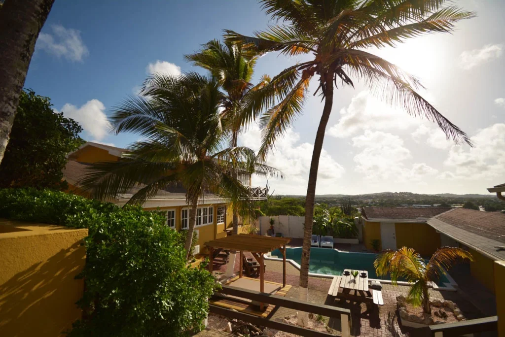 Bij Villa Telamon 8 hebben wij een vijftal afzonderlijke terrassen gemaakt waarbij het meest unieke terras in het hoofdhuis op de 1ste etage gelegen is. Vanaf dit terras heb je een uitzicht over Curaçao van Punda/Pietermaai tot aan de Sea Aquarium Beach met op de achtergrond de Caribische zee. In een studentenhuis met zo’n fantastisch uitzicht zul je niet snel meer wonen.