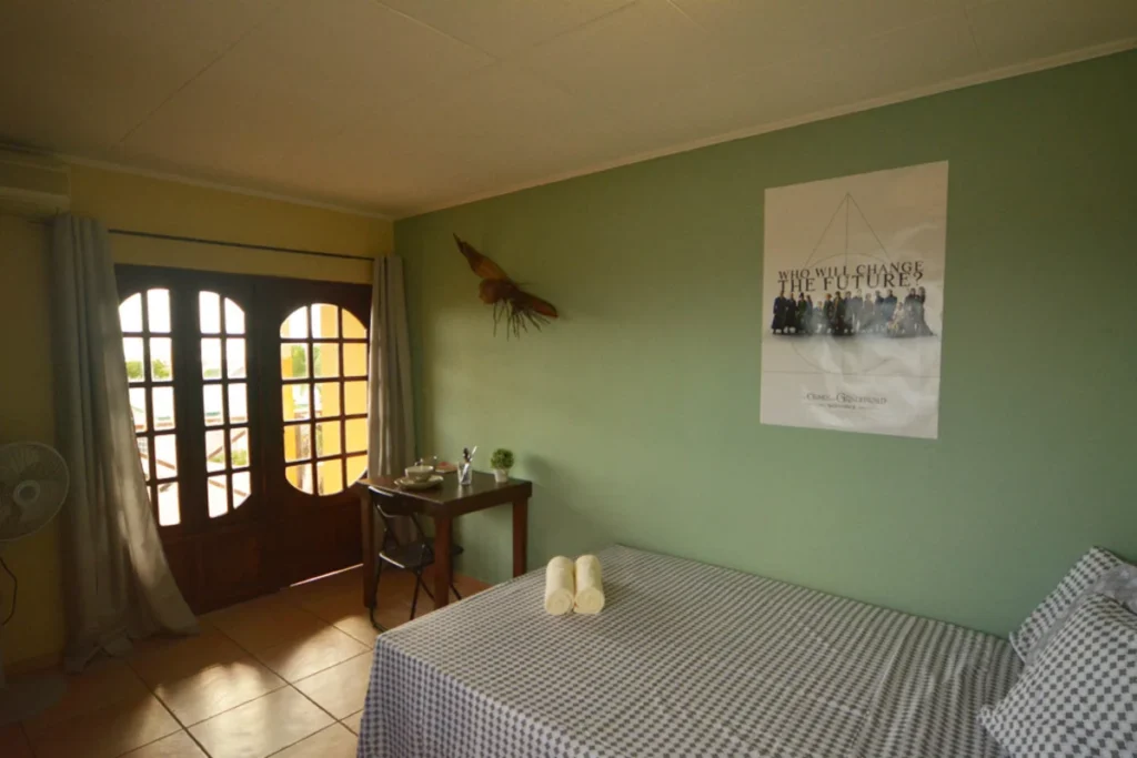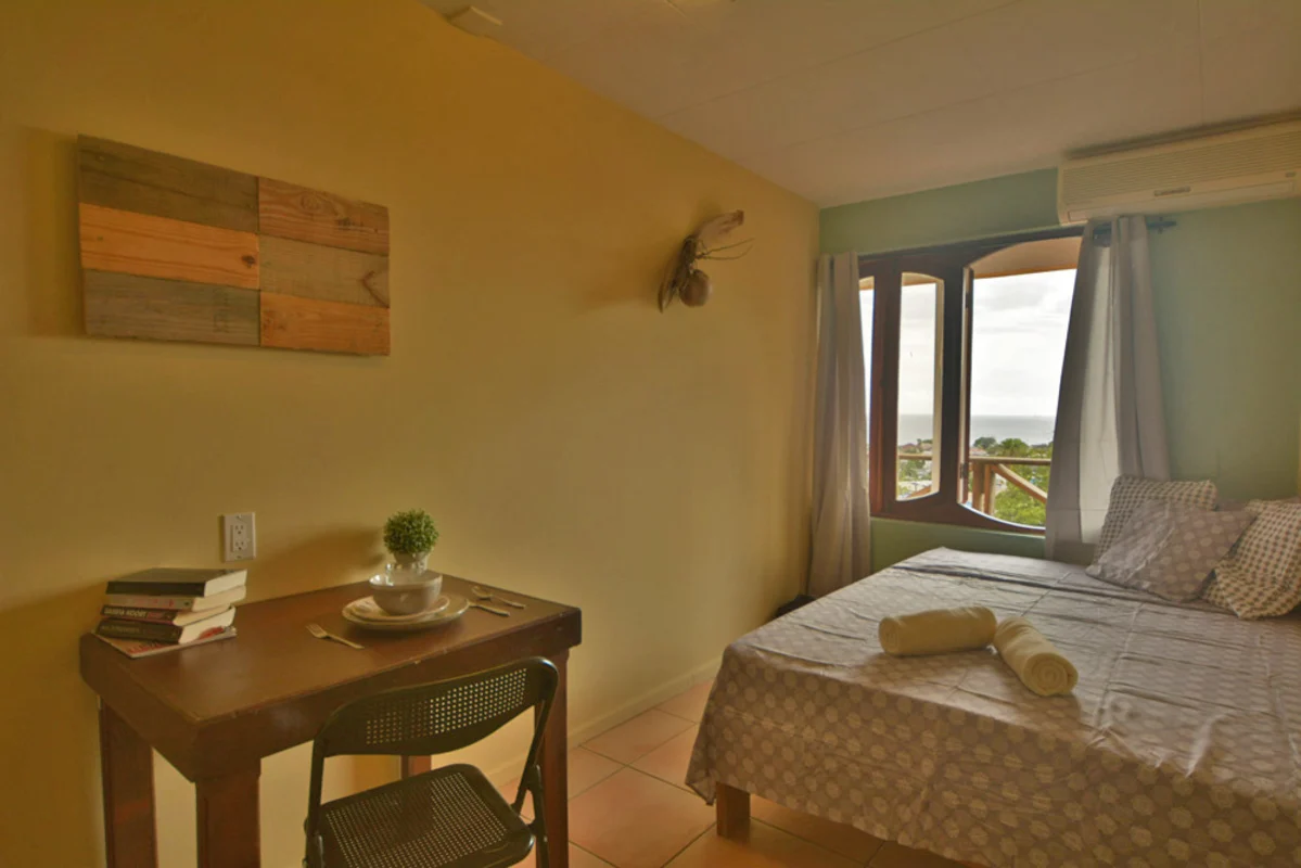 Hoe vaak kun jij nog zeggen dat je vanuit je kamer zicht had op de Caribische zee! Bij de Villa Telamon 43 jongeren- en studentenhuis beschikken wij over een aantal zeezichtkamers met tweepersoons bedden. Zoals alle kamers worden ook deze gemeubileerd opgeleverd. Neem alleen je kleding mee en je kunt per direct fijn wonen. Wat er allemaal in je kamer aanwezig is staat omschreven onder het kopje 'inrichting kamer'. Daarnaast kun je ook nog een aantal extra diensten afnemen zoals airconditioning of een privé koelkast. Deze kamer is gelegen op het jongeren- studentencomplex Villa Vredenberg 43. Hier woon je met vele andere stagiaires en jongeren en beleef je een fantastische en sociale tijd op Curaçao. De kamers hebben allemaal een tropische uitstraling. Naast je kamer maak je ook gebruik van de gezamenlijke keukens, badkamers, terrassen het zwembad en de unieke woonkamer met bar!